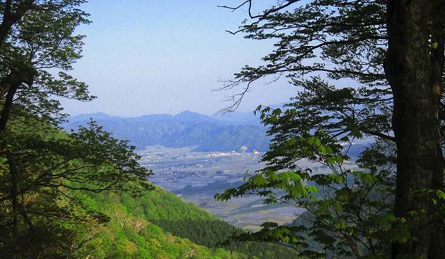 | 幸いこの山はケータイが通じるので仲間と離れても安心です まぁ、ここは慌てず騒がずマイペースで行こう! 木の間から、時々、見える下界の風景でもノンビリと眺めながら ・・・ |