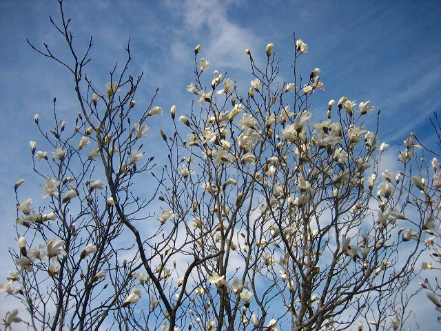 しんどい坂ですが、見上げればコブシがキレイ!!